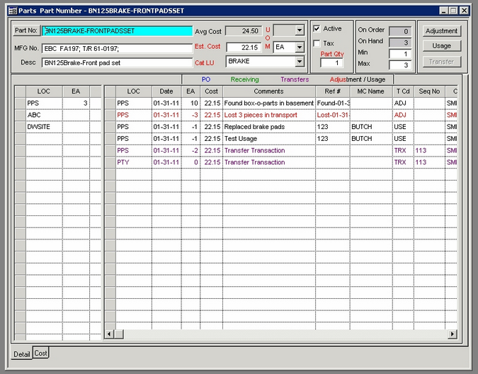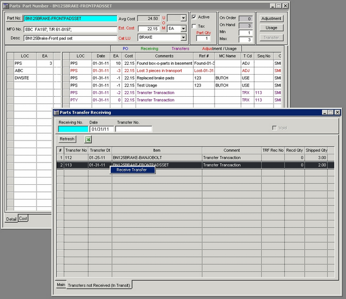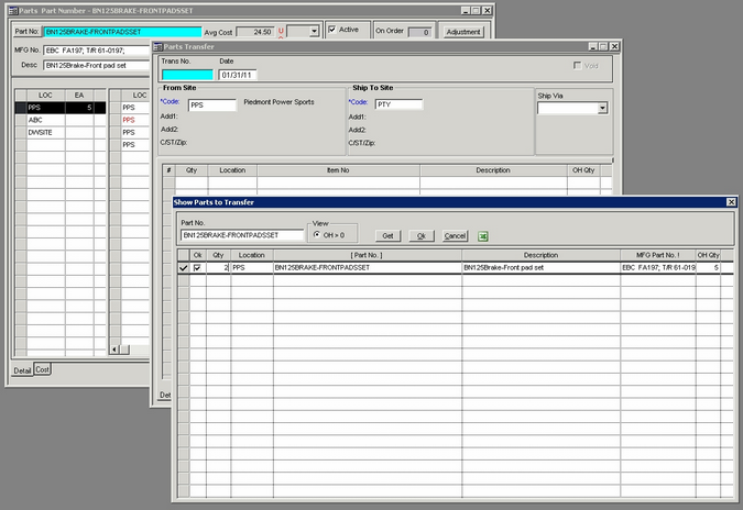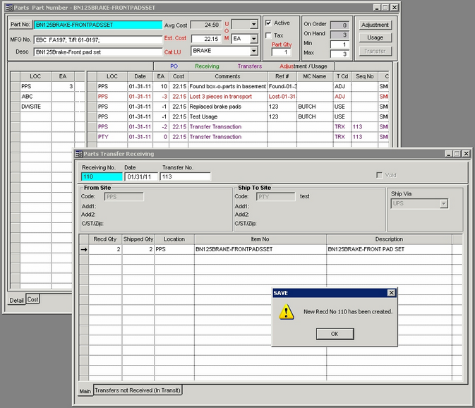 | 9. | Close Parts Transfer screen. Refresh the Parts screen (F5 key).